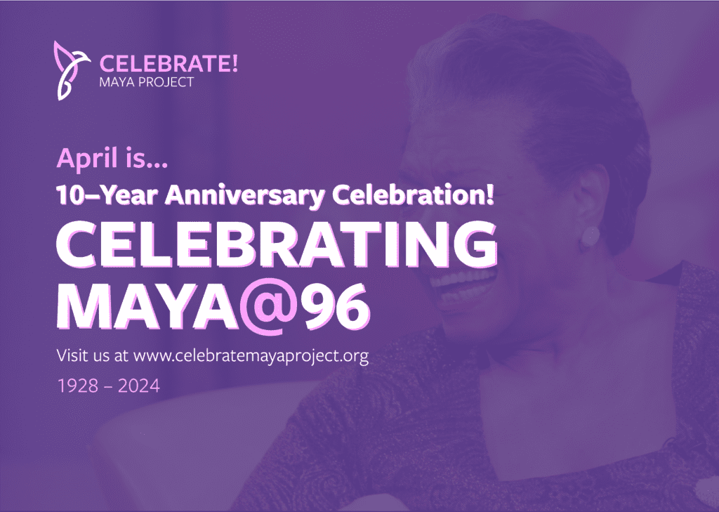 2024 marks 10 years since the death of Dr. Maya Angelou, and 10 years since a small group of Arkansas women came together to create a “Day of Remembrance,” in honor of Dr. Angelou’s life, in Stamps, Arkansas—Dr. Angelou’s childhood home. This year, Celebrate! Maya Project is celebrating its 10-year anniversary as well as its annual celebration of Dr. Angelou’s birthday in April.